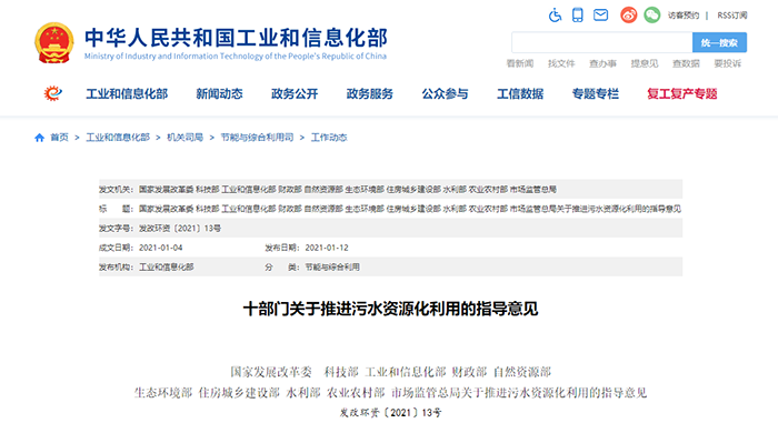 近日,國家發(fā)展改革委聯(lián)合科技部、工業(yè)和信息化部、財政部、自然資源部、生態(tài)環(huán)境部等十部門共同印發(fā)了《關于推進污水資源化利用的指導意見》(以下簡稱《指導意見》),對全面推進污水資源化利用進行了部署。